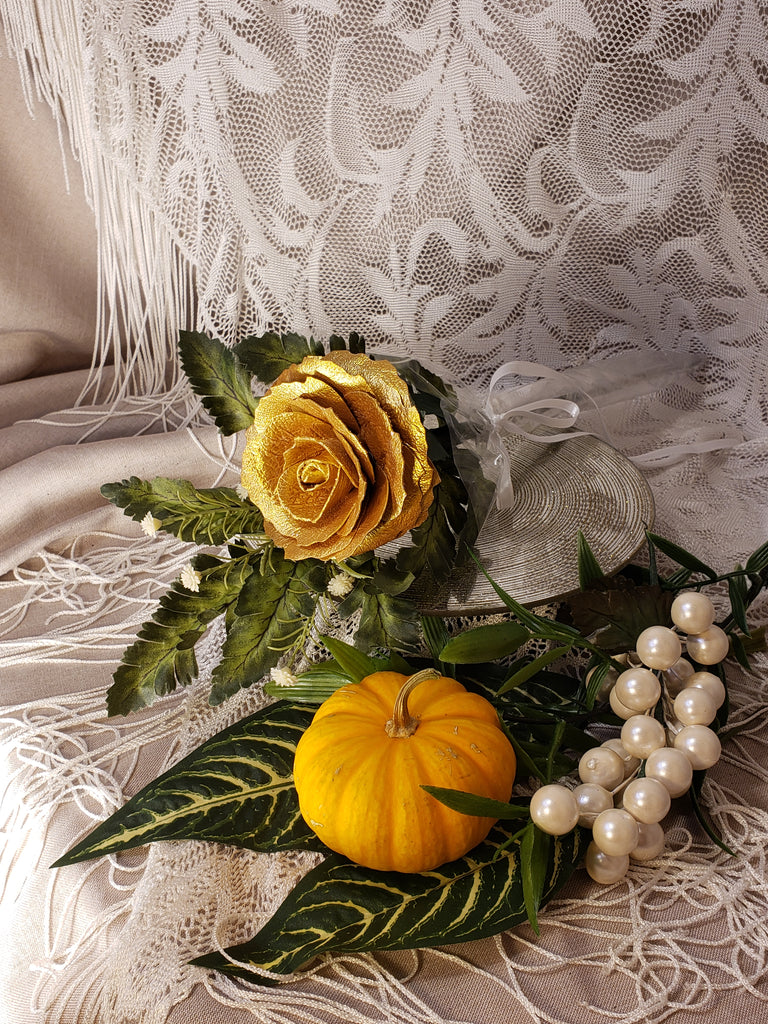 Luxury Leather Rose Single Gold Handmade by USA Artist (C)