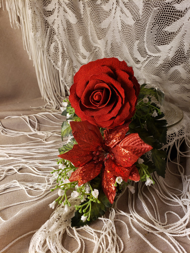 Luxury Leather Rose Single Red (C) Handmade by USA Artist